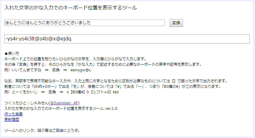 「入れた文字のかな入力でのキーボード位置を表示するツール」をつくりました