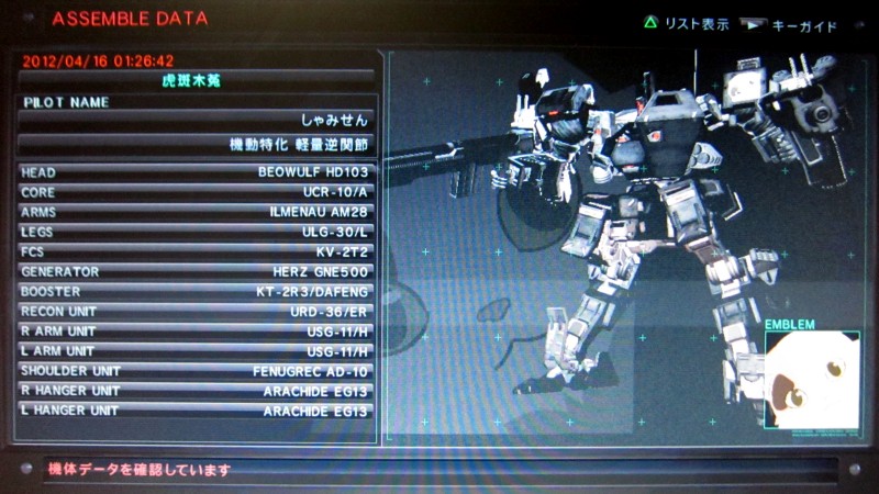 フレーム内装はほとんど違わないので武装だけ備忘も兼ねて書いておきます。