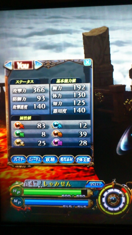 攻撃力276、HP541、オート15。