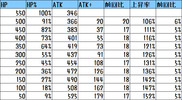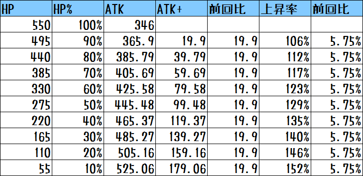 確かにHPが減るほど攻撃力は伸びますが、