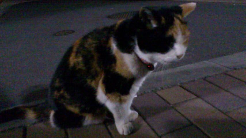 昨日の深夜に見かけて、例によって接近したらかんたんになでさせてくれました。