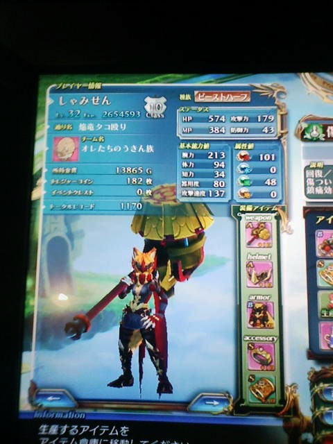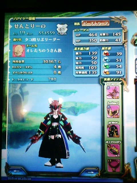 ステータスは、最も使い込んでるメイン武器時のものです。