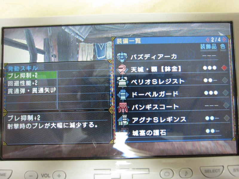 お守りは精密射撃4、スロ2に回避性能3の装飾品。